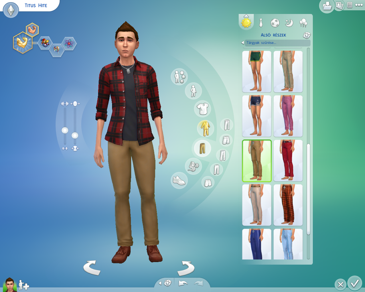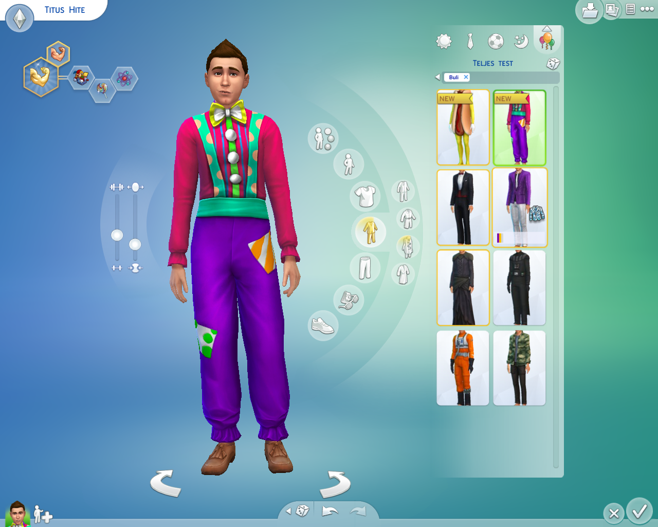 Nagyon megváltozott a simlétrehozó ha a ruhát akarjuk változtatni akkor rá kell lépni a sis ruhájára ha a haját akkor a hajár.